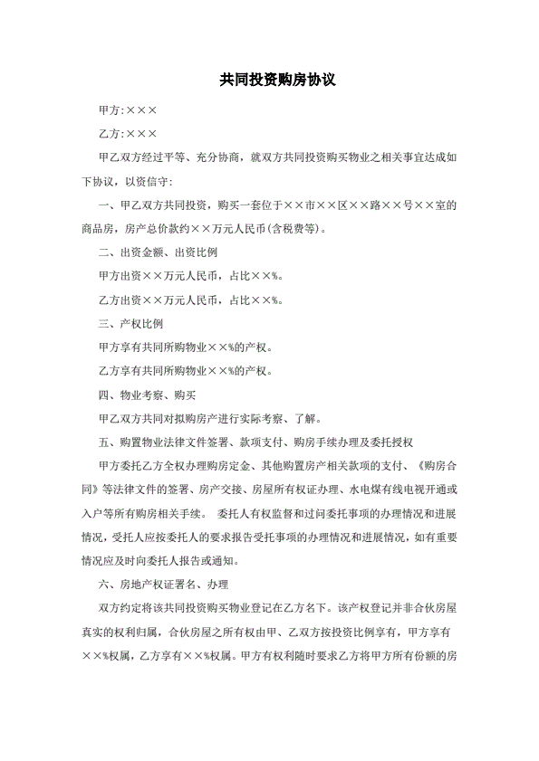 共同投资购房协议