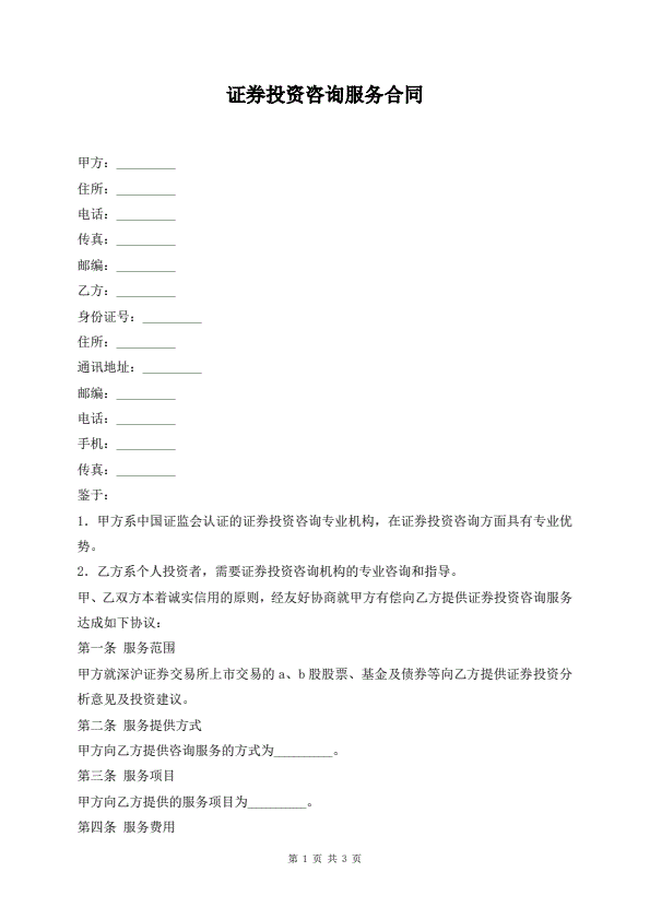 证券投资咨询服务合同