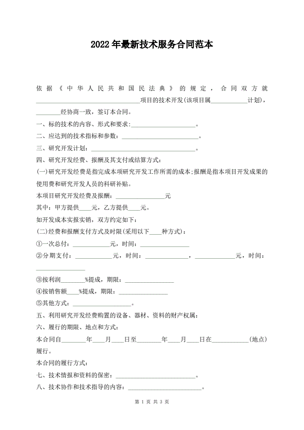 2022年最新技术服务合同范本