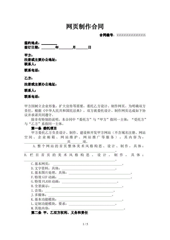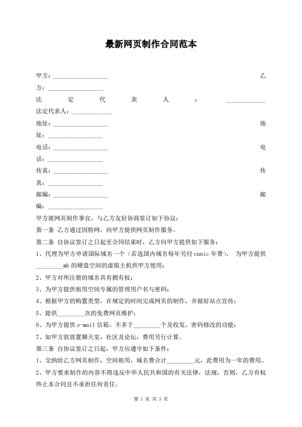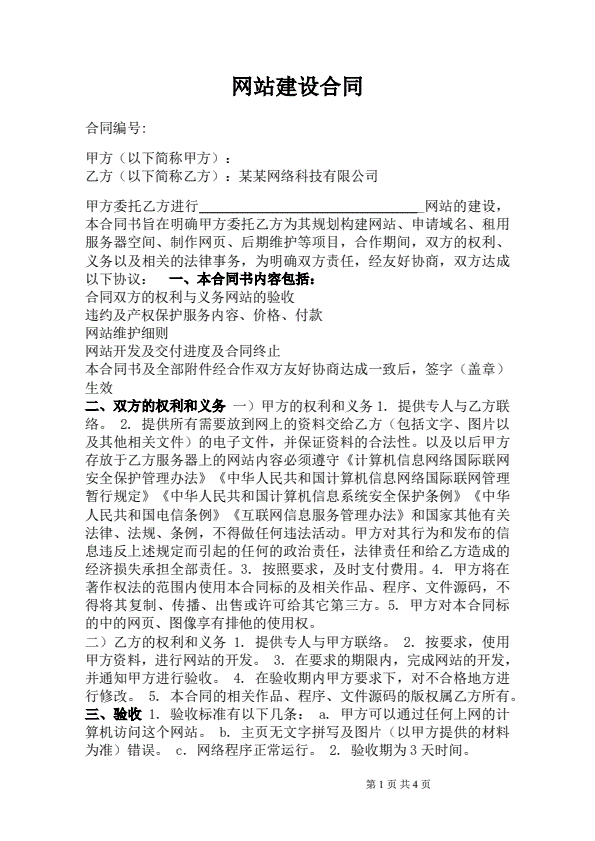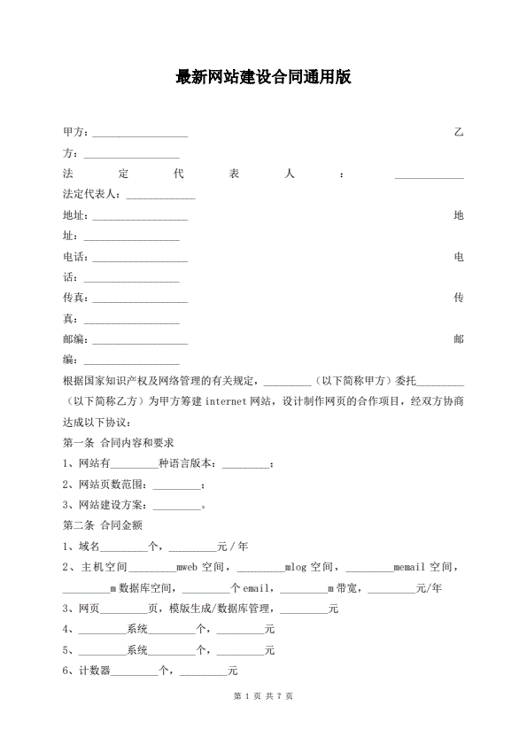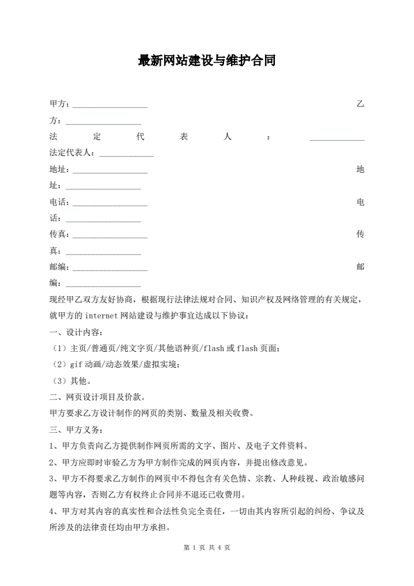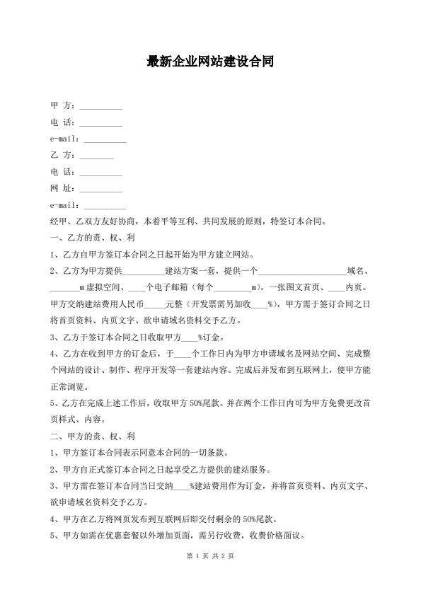 最新企业网站建设合同