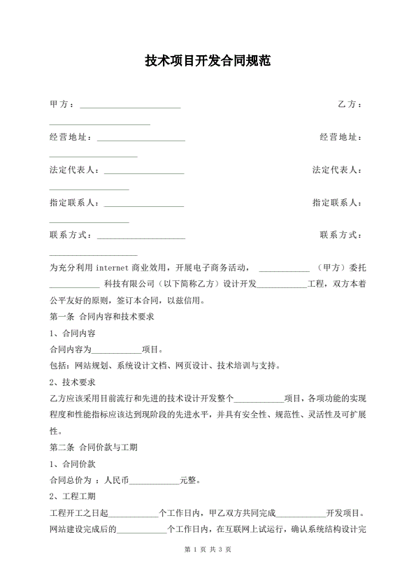 技术项目开发合同规范
