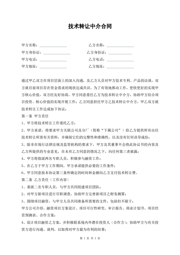 技术转让中介合同