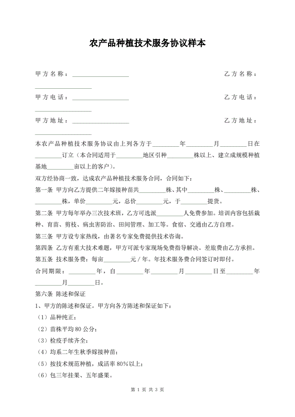 农产品种植技术服务协议样本