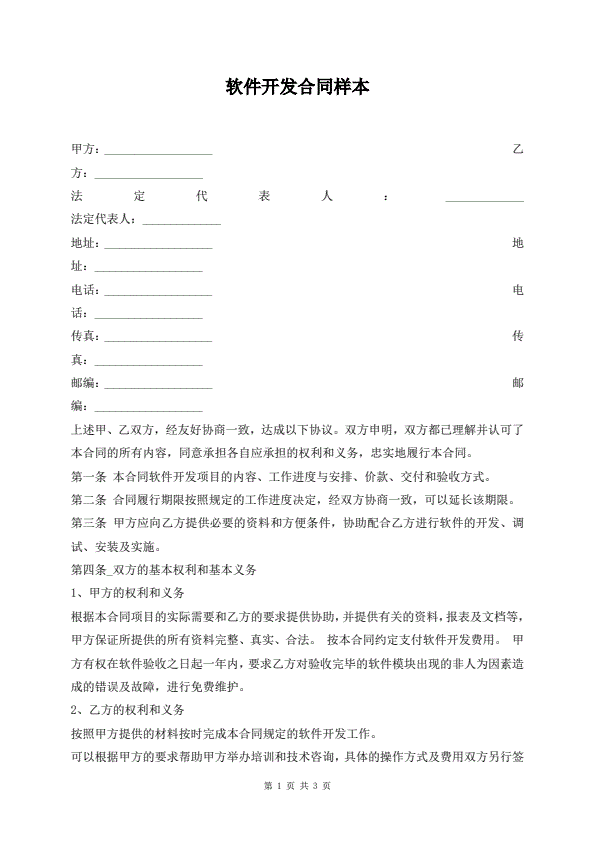 软件开发合同样本