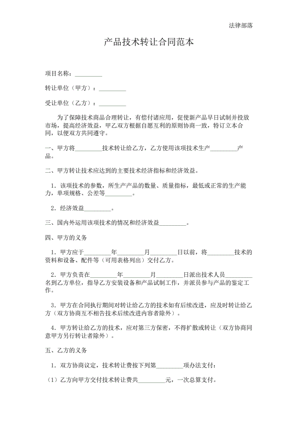 产品技术转让合同范本