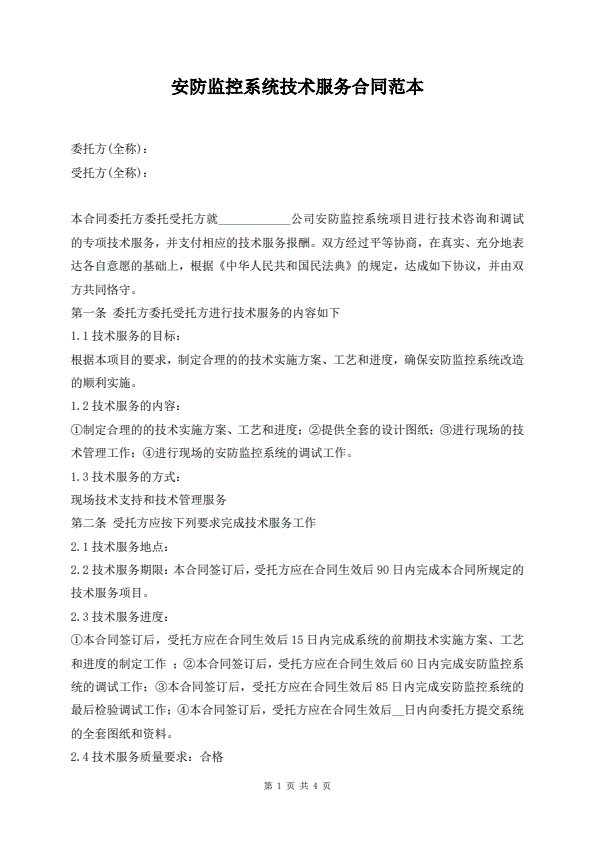 安防监控系统技术服务合同范本