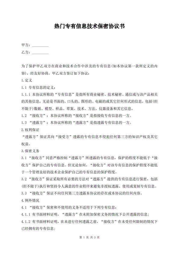 热门专有信息技术保密协议书