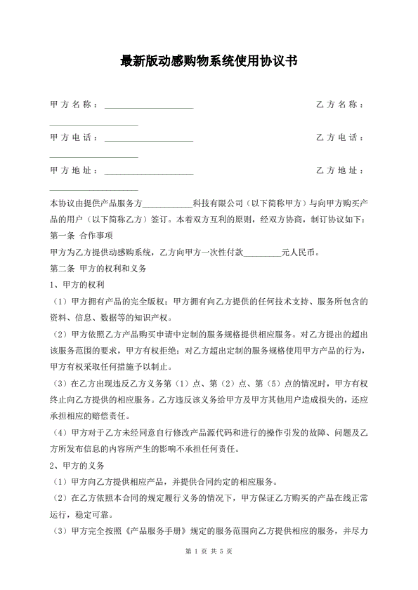最新版动感购物系统使用协议书