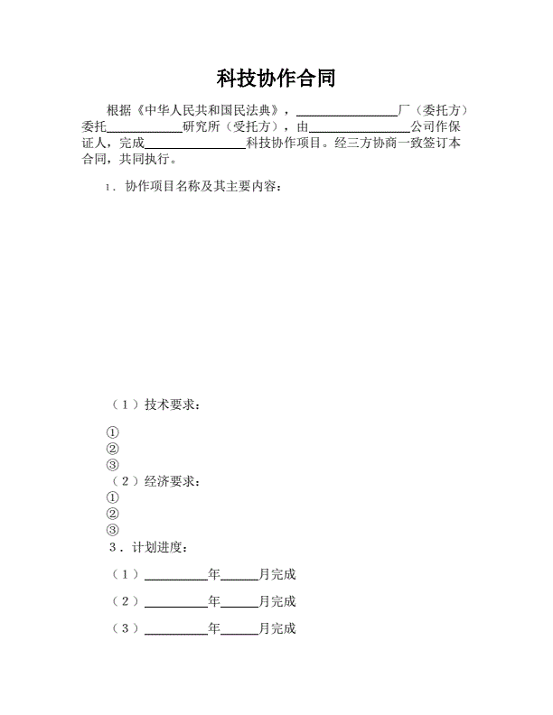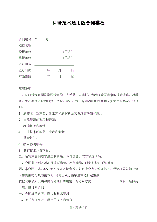 科研技术通用版合同模板