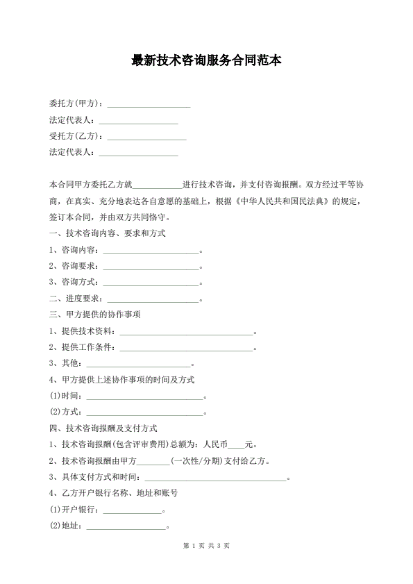 最新技术咨询服务合同范本