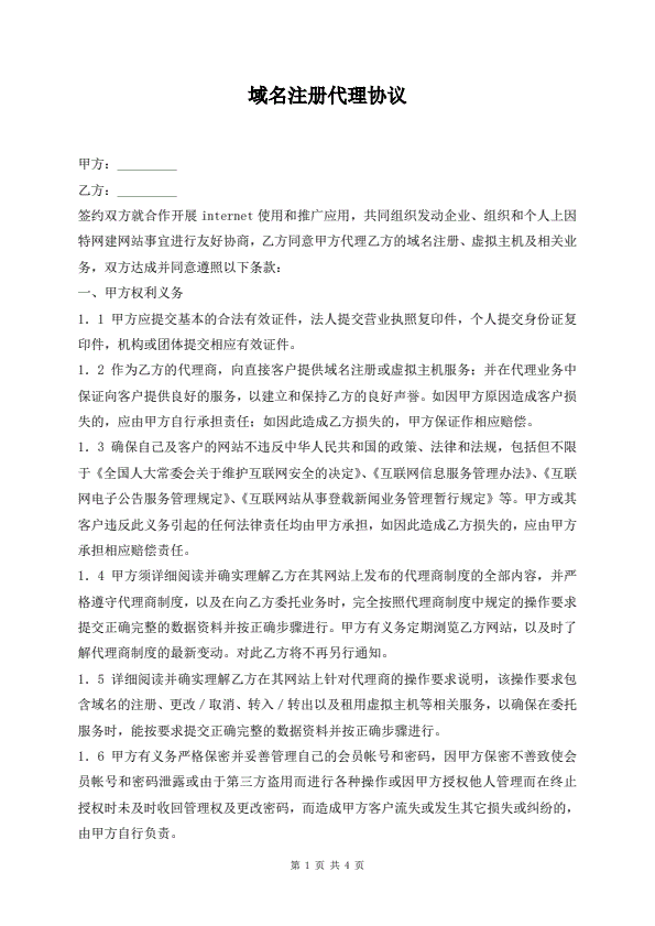 域名注册协议模板