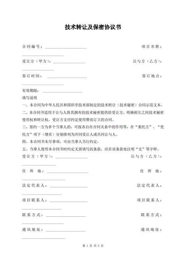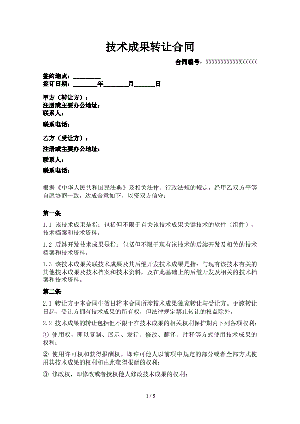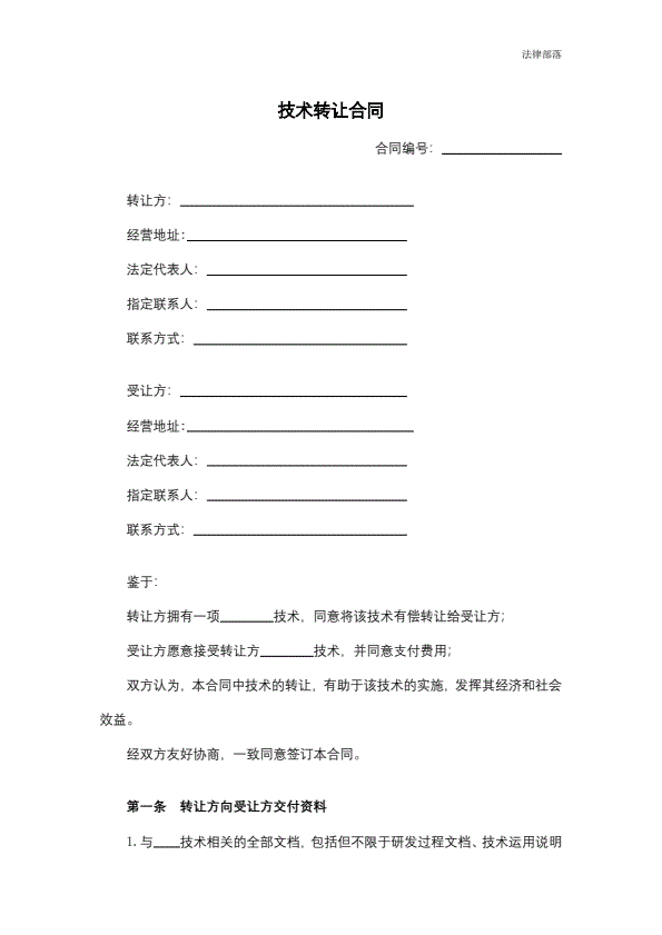 技术转让合同专业版
