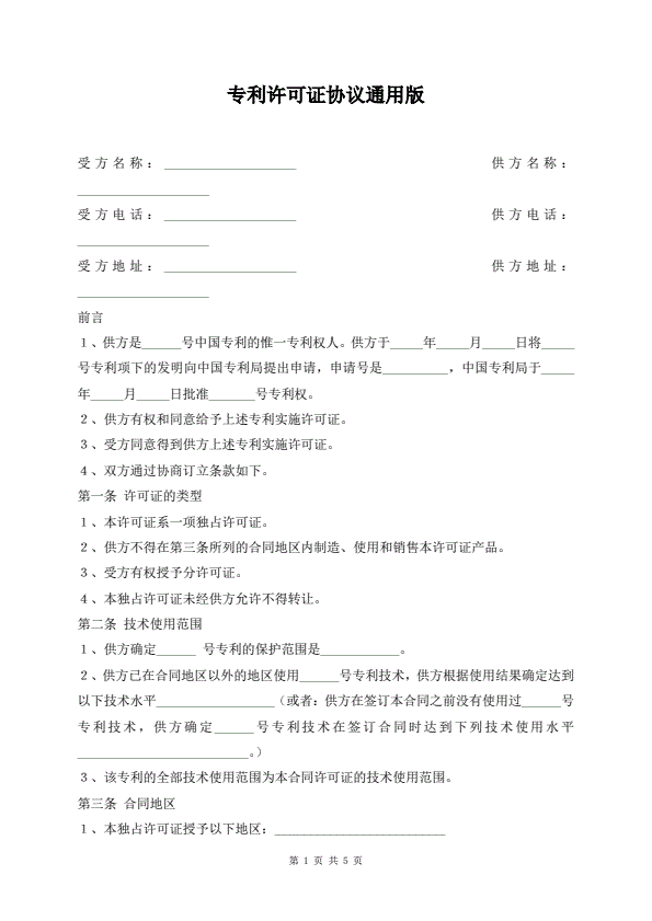 专利许可证协议通用版