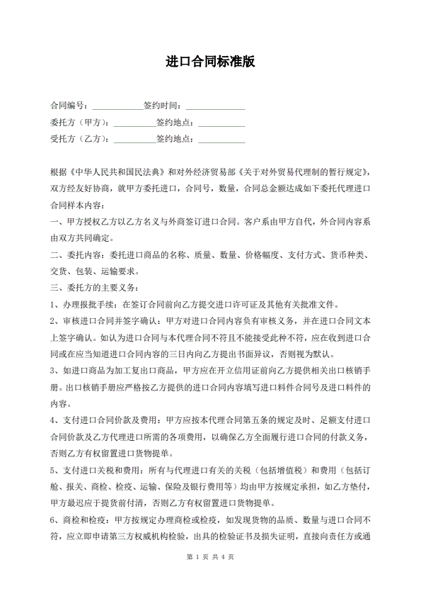 进口合同标准版