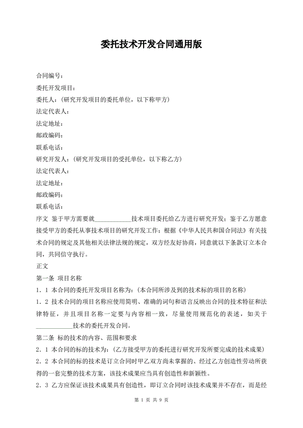委托技术开发合同通用版