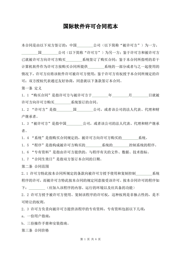 国际软件许可合同范本