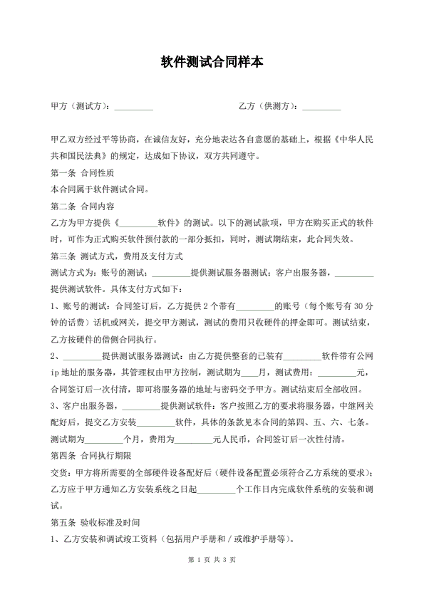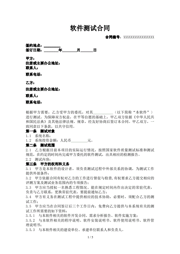 软件测试合同样本