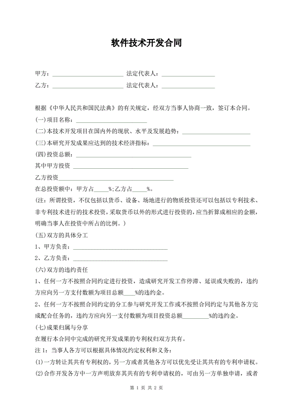 软件技术开发合同