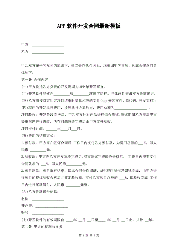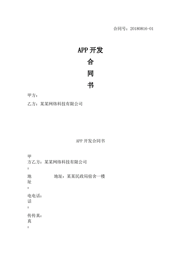 APP软件开发合同最新模板