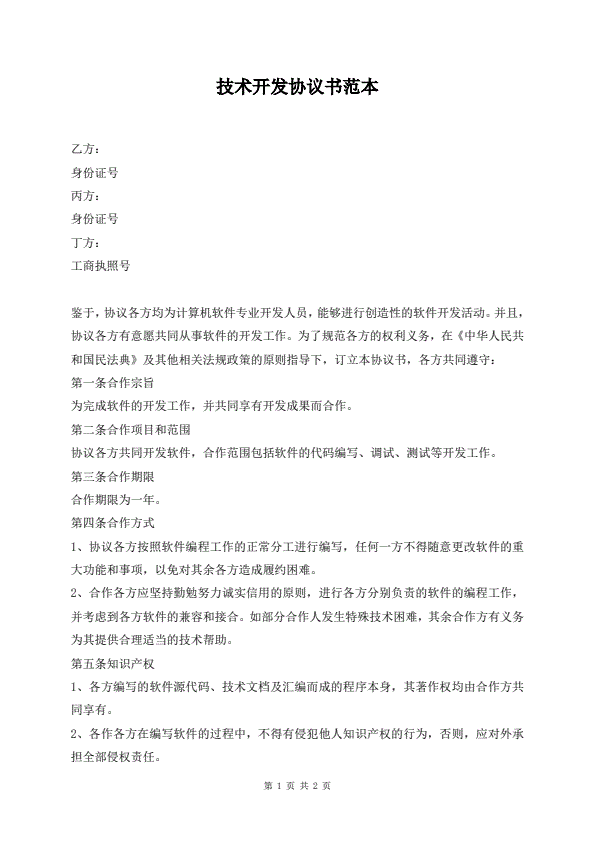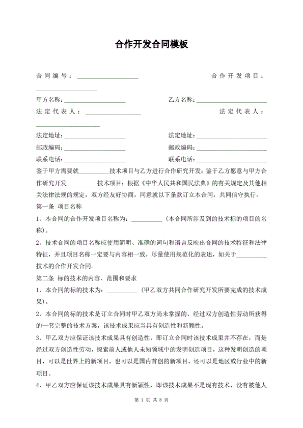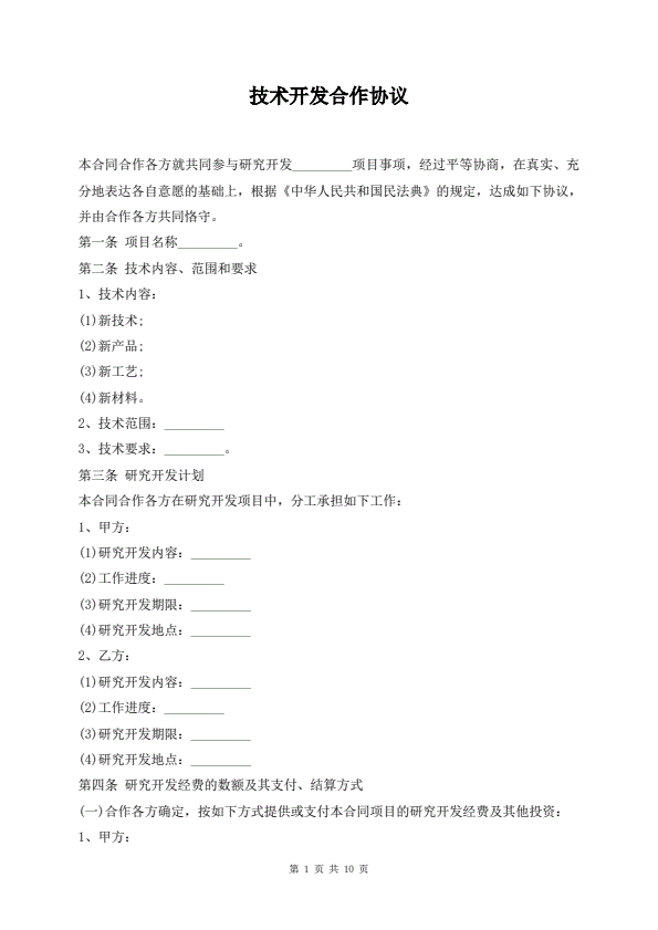 技术合作开发合同范本
