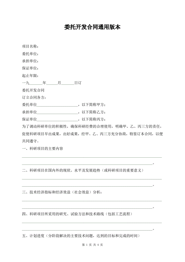 委托开发合同通用版本