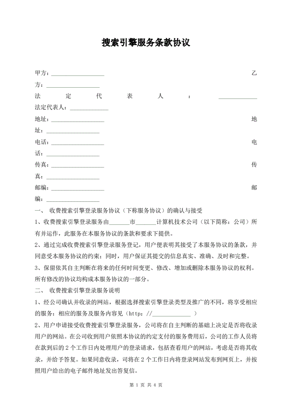 搜索引擎服务条款协议