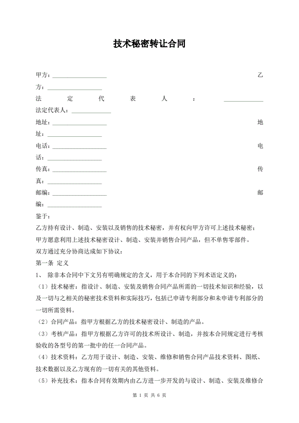 技术转让合同简版