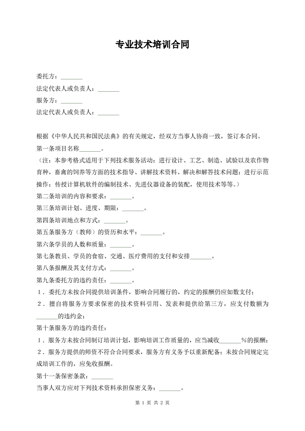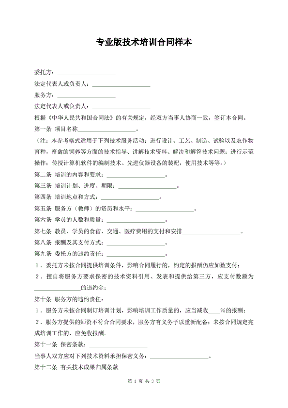 专业技术培训合同