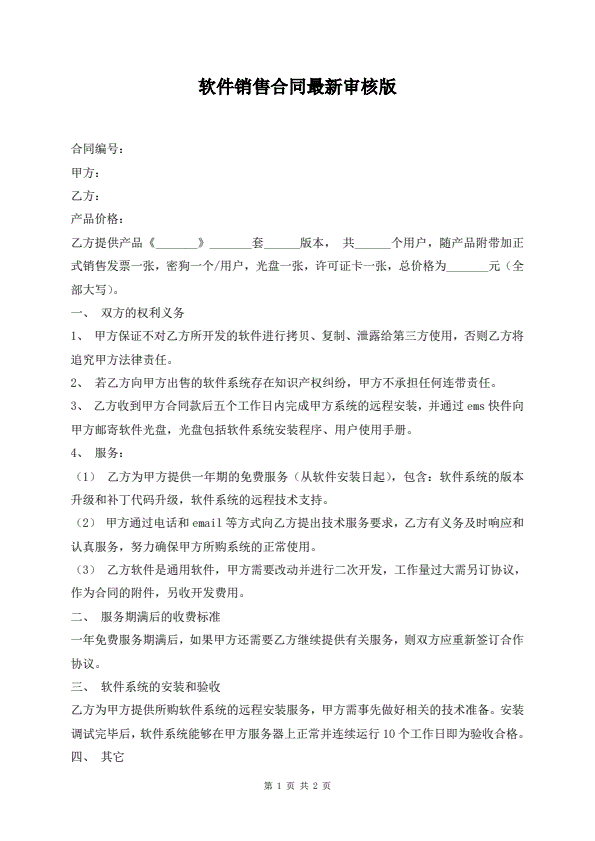 软件销售合同最新审核版