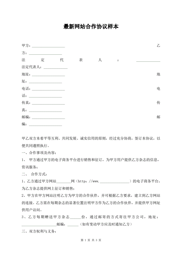 最新网站合作协议样本