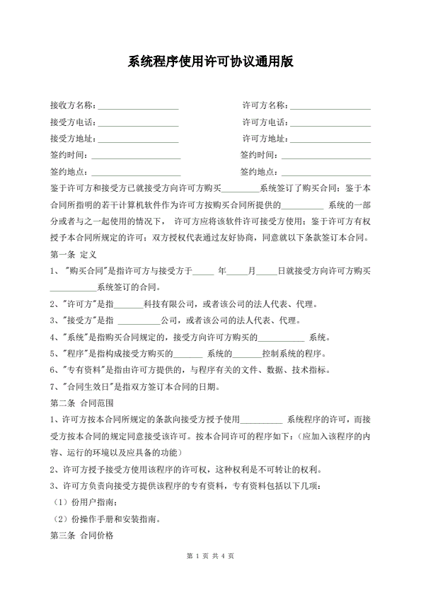 系统程序使用许可协议通用版