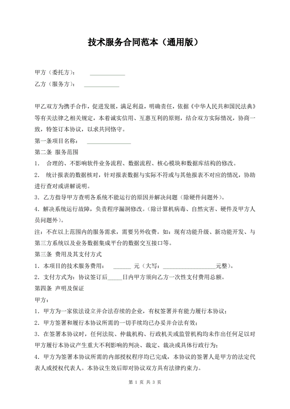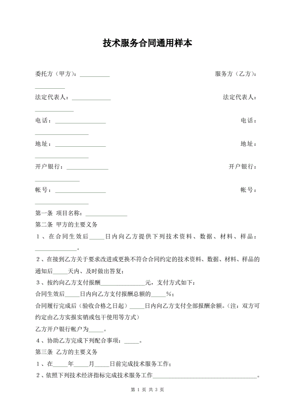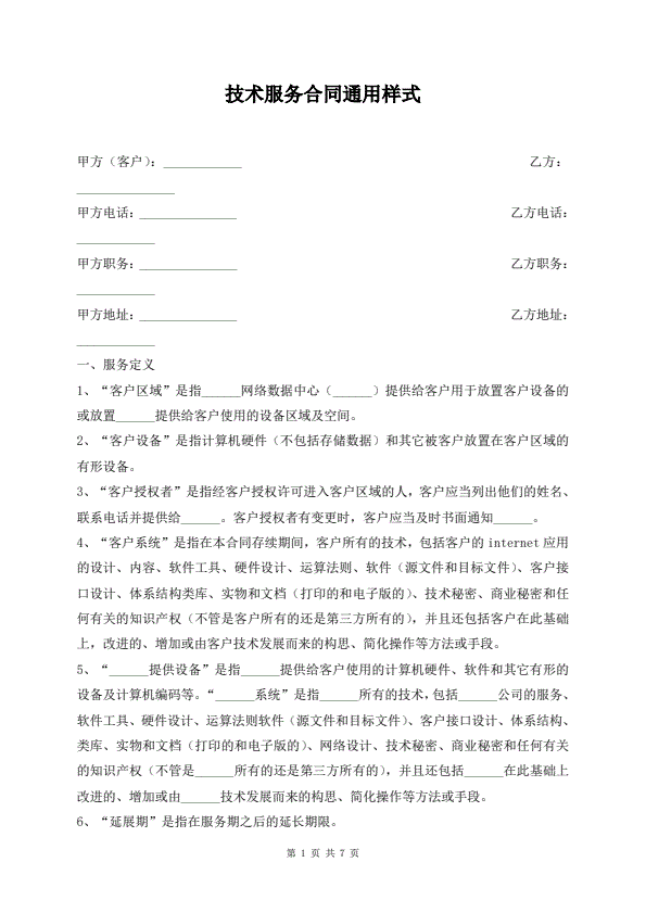 技术服务合同通用样本