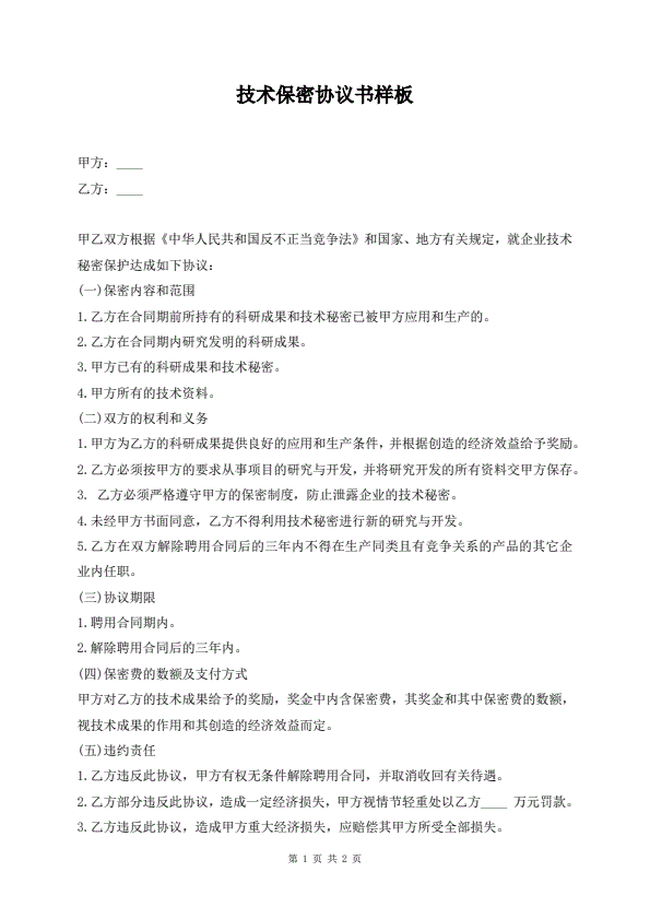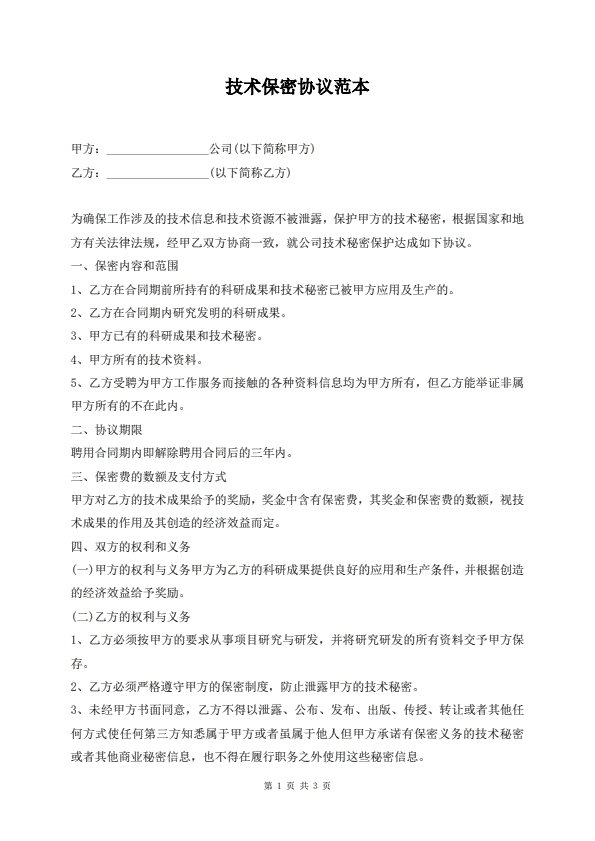 技术保密协议书样板