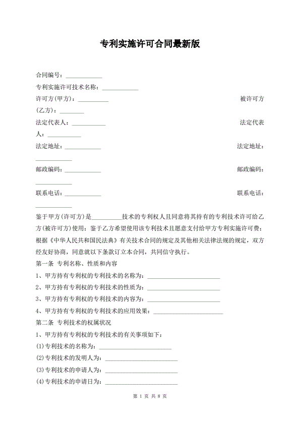 专利实施许可合同最新版