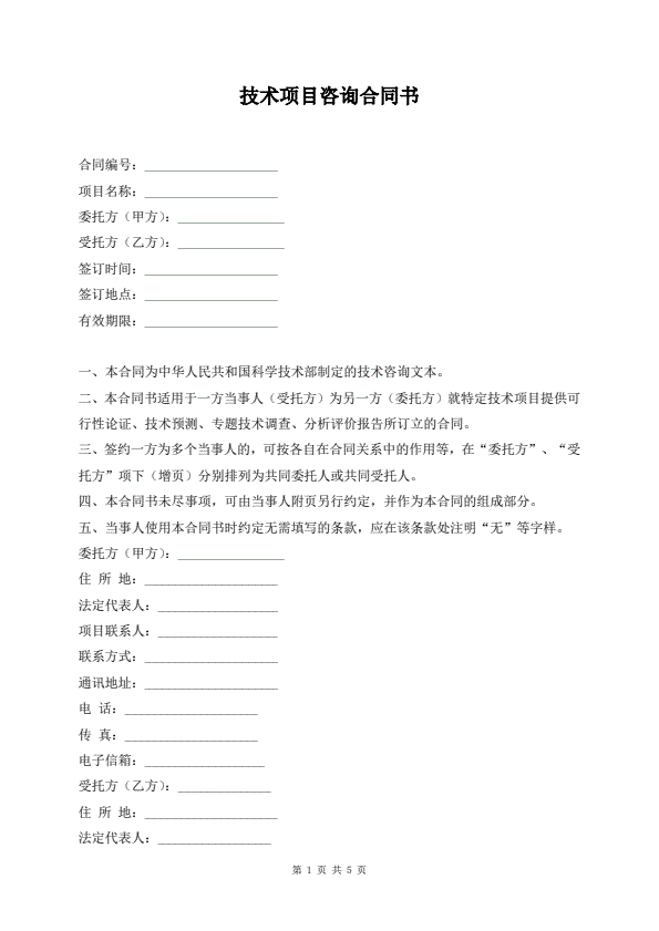 技术项目咨询合同书