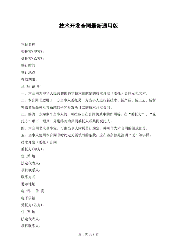 技术开发合同最新通用版