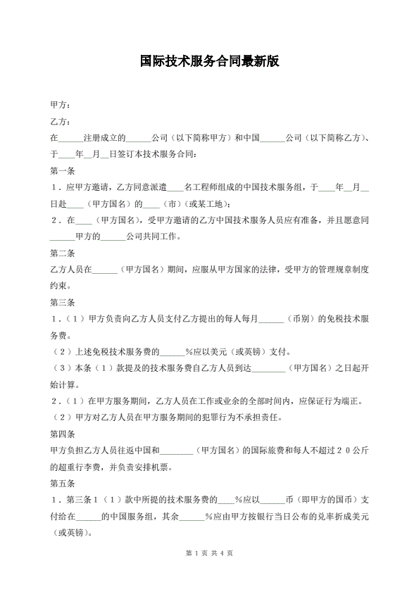 国际技术服务合同最新版