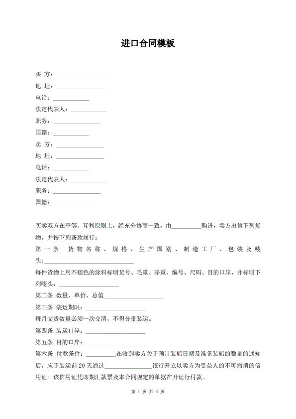 进口合同模板
