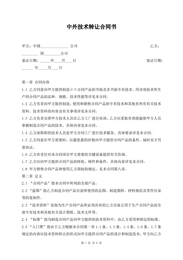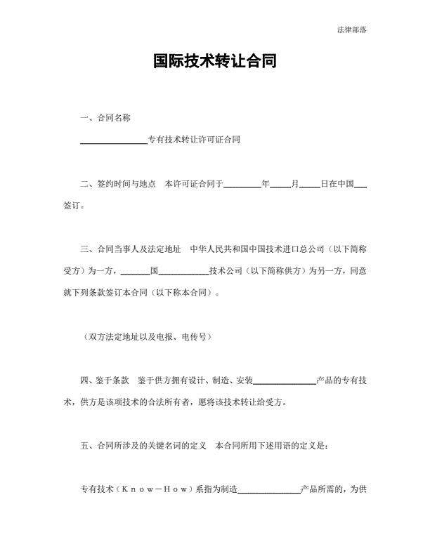 国际技术转让合同简单版