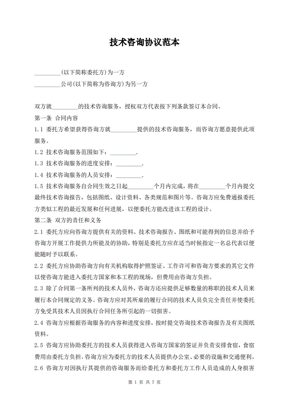 技术咨询合同范本
