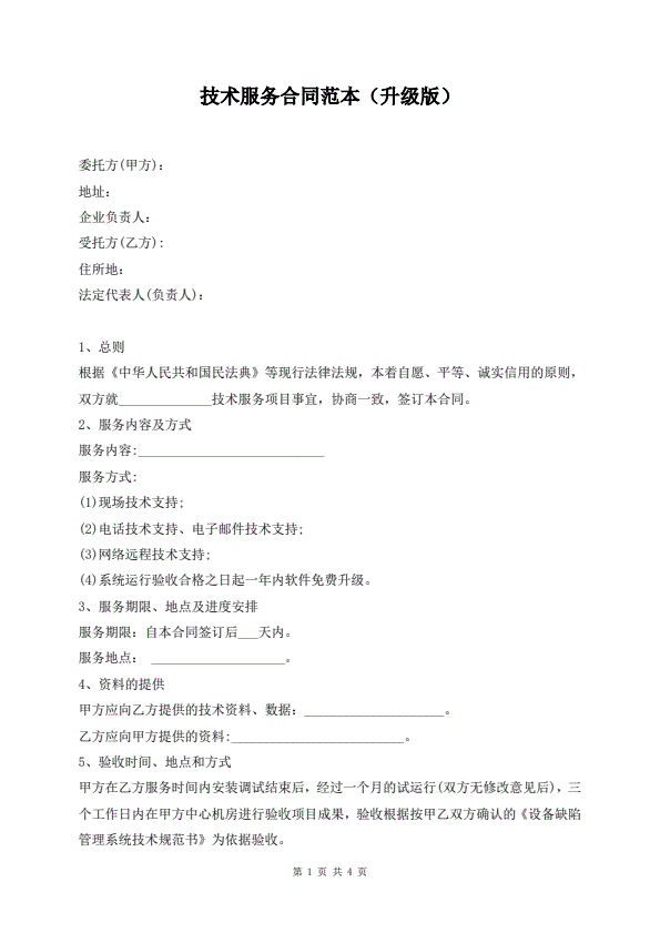 技术服务合同范本(升级版)