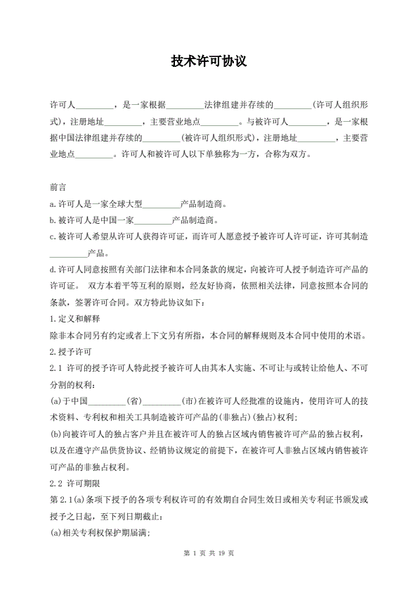 技术许可协议