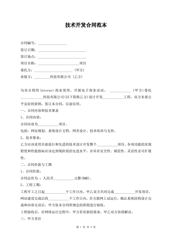 技术开发合同范本