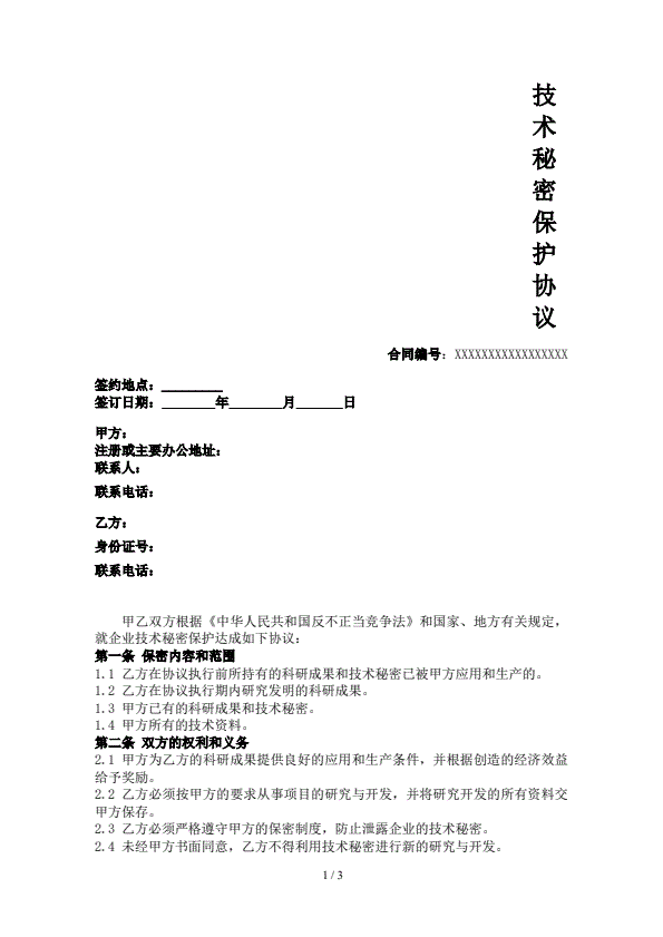 技术秘密保护协议
