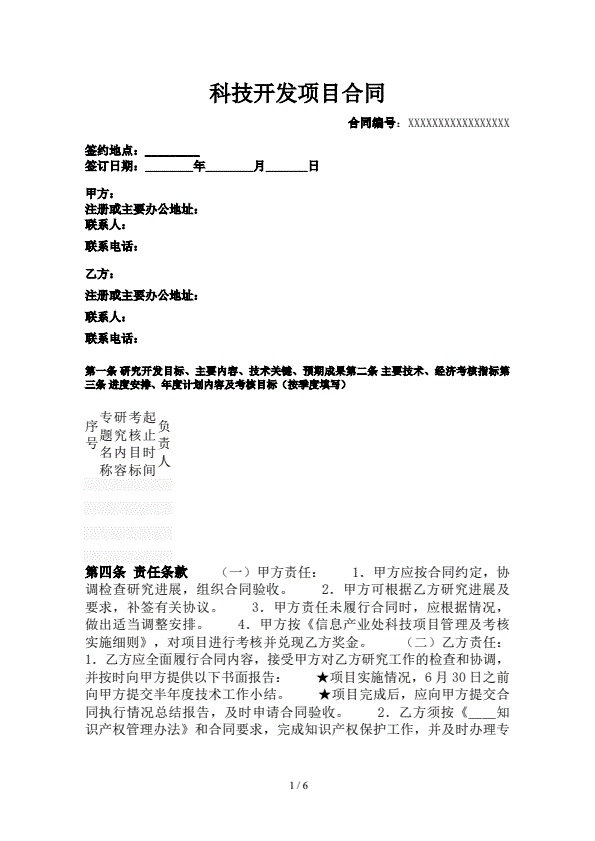 科技开发项目合同