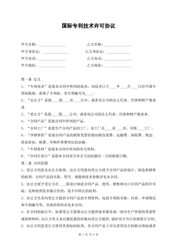 国际专利技术许可协议