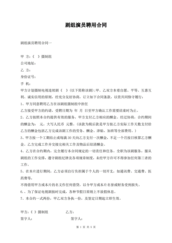 剧组演员聘用合同