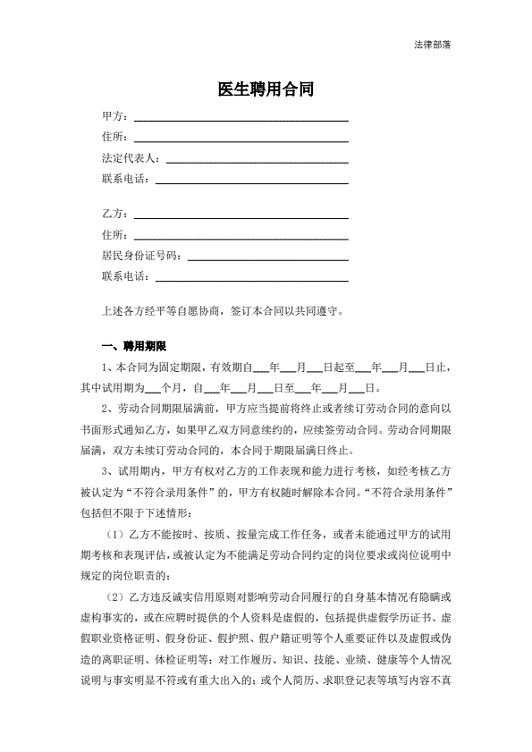 医生聘用合同