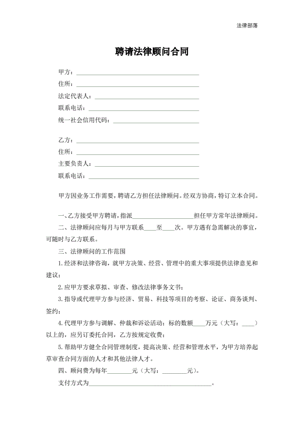聘请法律顾问合同