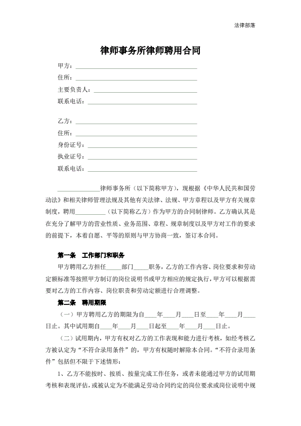 律师事务所律师聘用合同